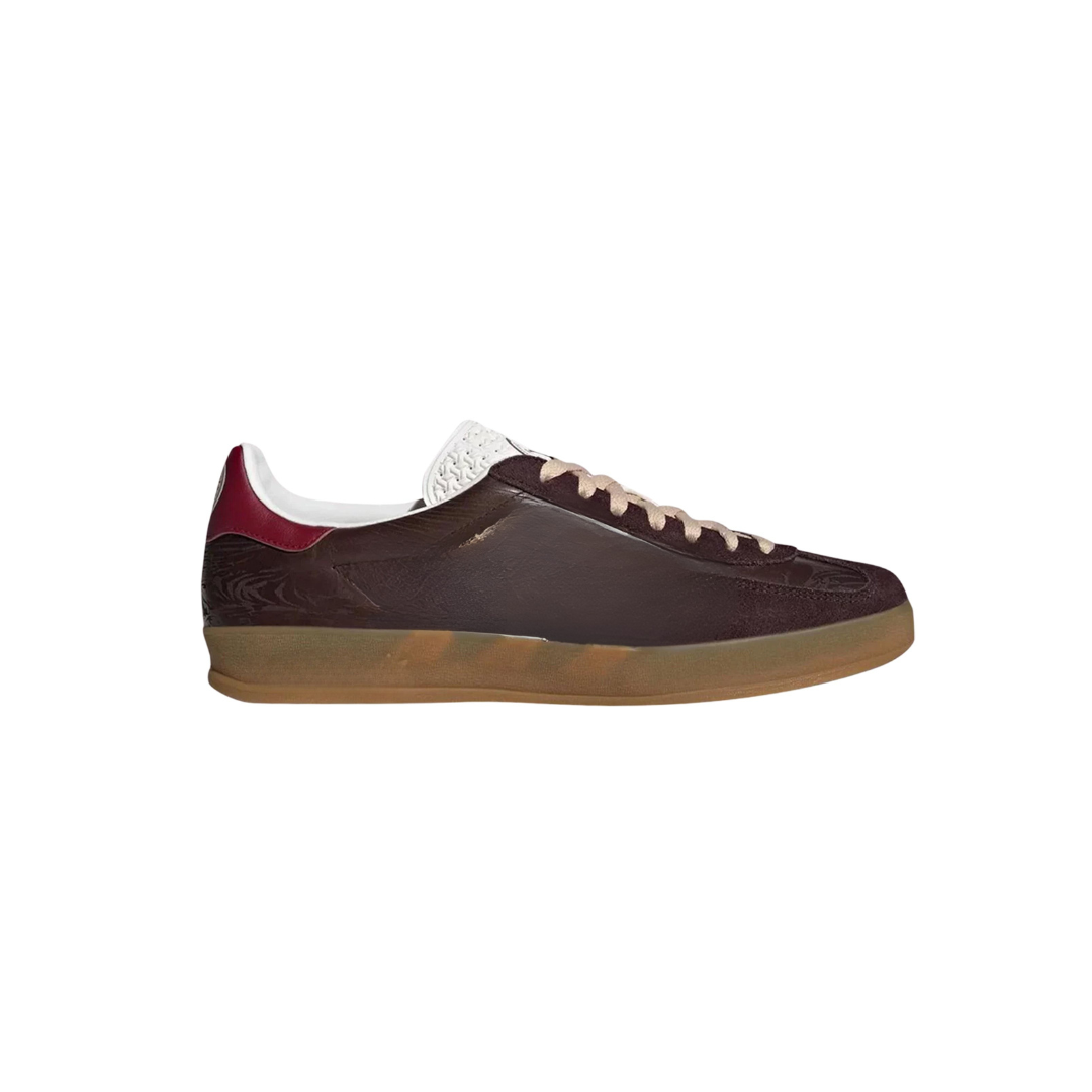 Brown leather upper with laser-etched details that resemble a violin or cello. It's a subtle yet eye-catching design.