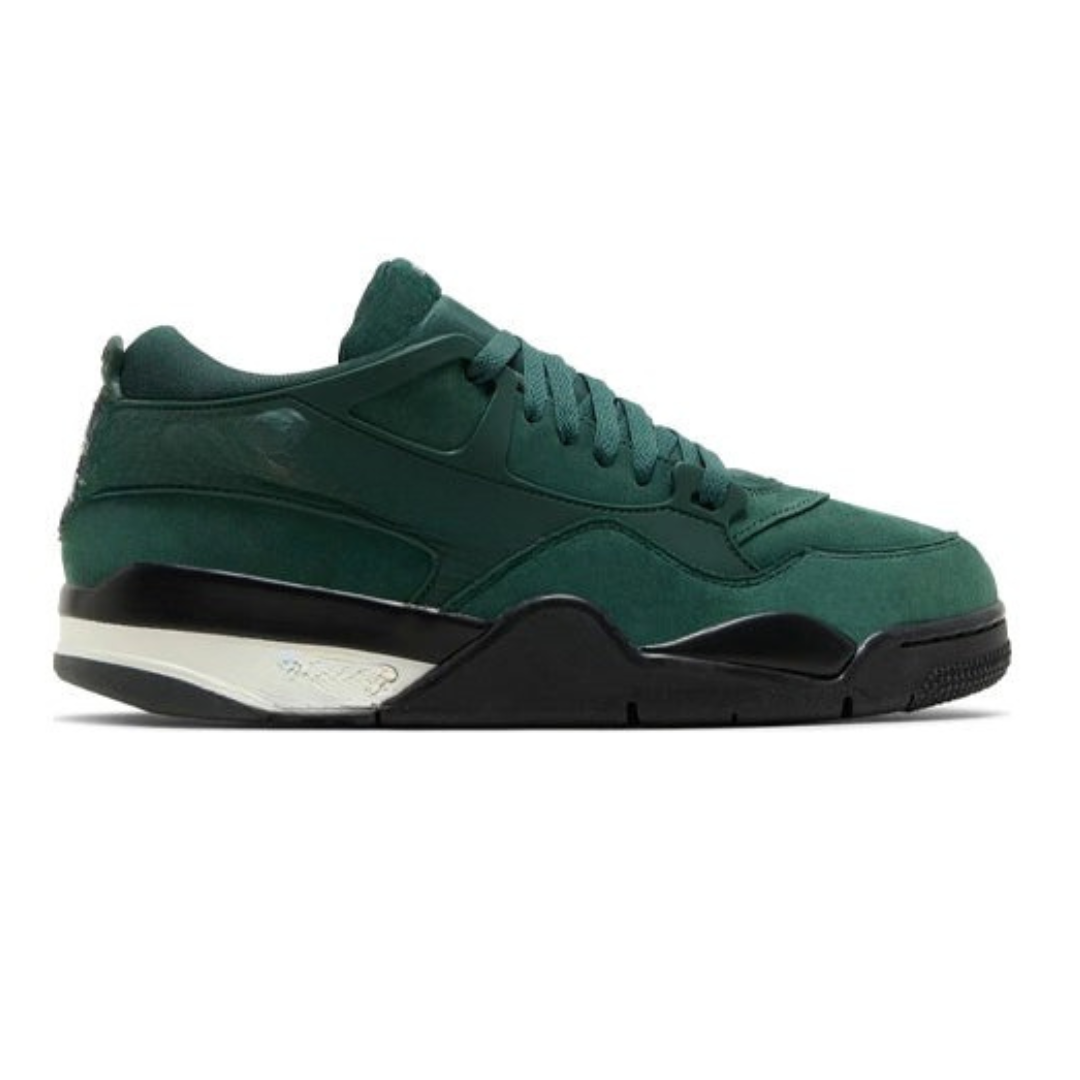 The upper sits on a two-toned midsole with color blocked sections of black and Sail, as well as visible details cushioning in the heel.