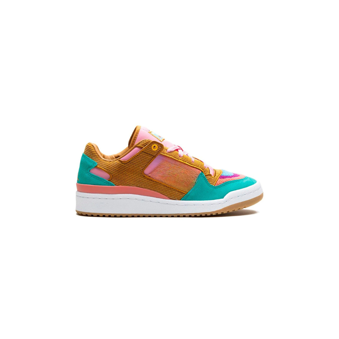 The adidas Forum Low The Simpsons Living Room sneaker is a whimsical tribute to the beloved TV series. Stepping into these shoes feels like being ushered straight into the Simpsons' iconic living room. The colorway, Mesa/Tactile Rose/Cloud White, is unmistakably reminiscent of the family's abode, with pink segments covering the tongue, laces, and midfoot reflecting the living room walls.