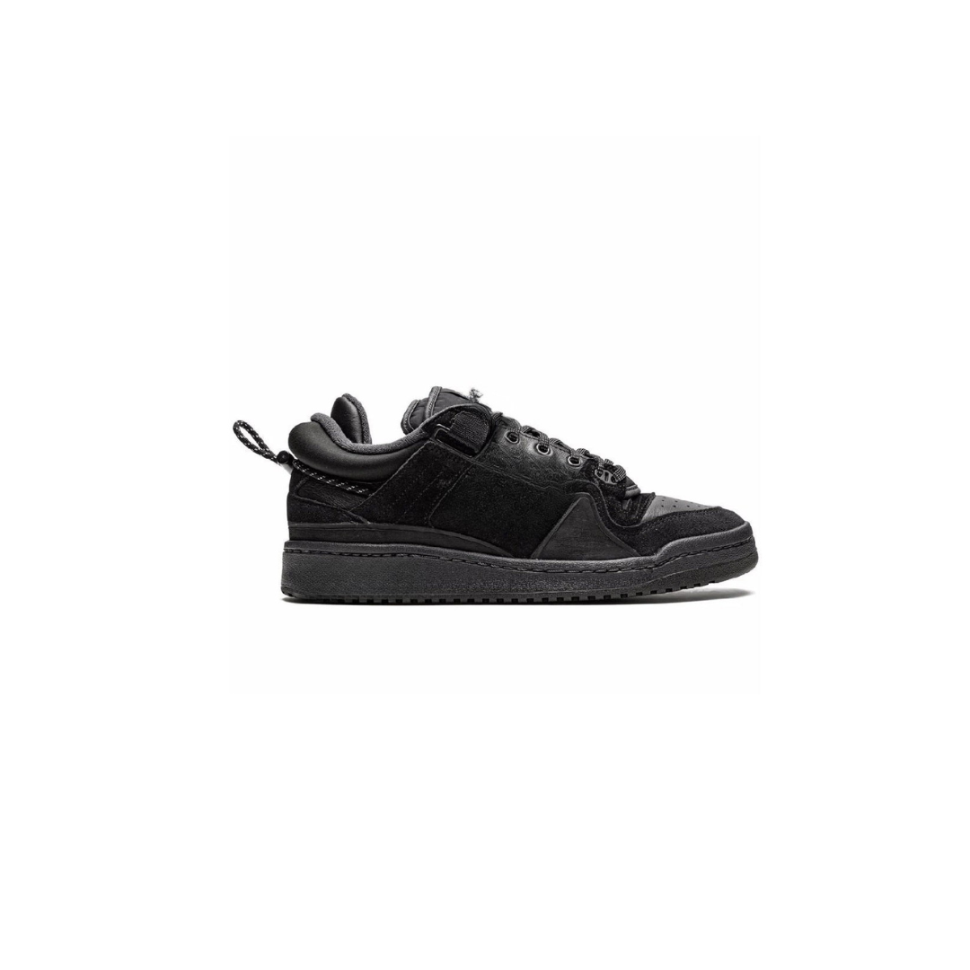 The adidas Forum Low Bad Bunny Back To School features a triple black leather and suede upper atop a black sole. Like previous Bad Bunny Forum releases, this Forum is equipped with a double tongue and padded ankle strap.